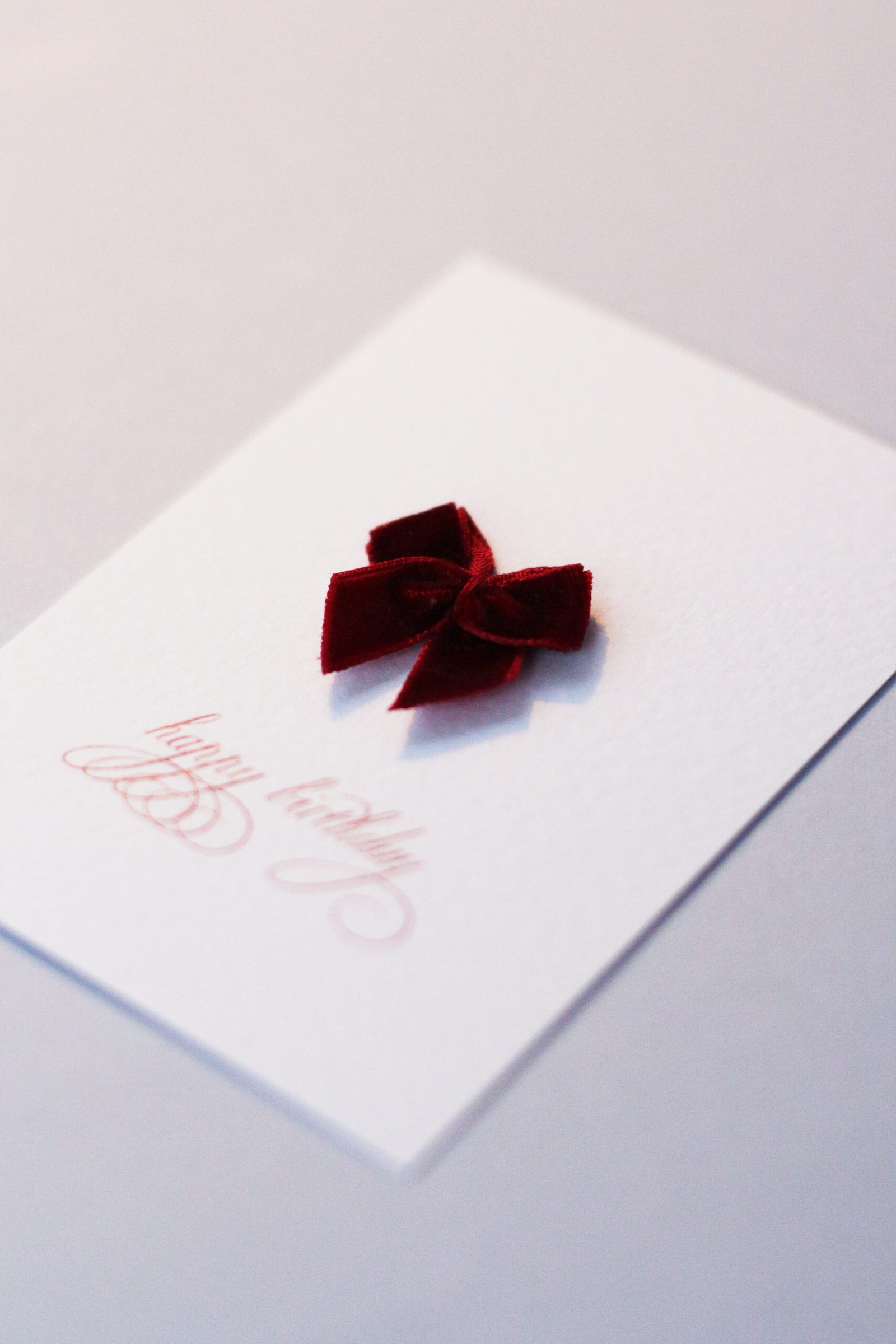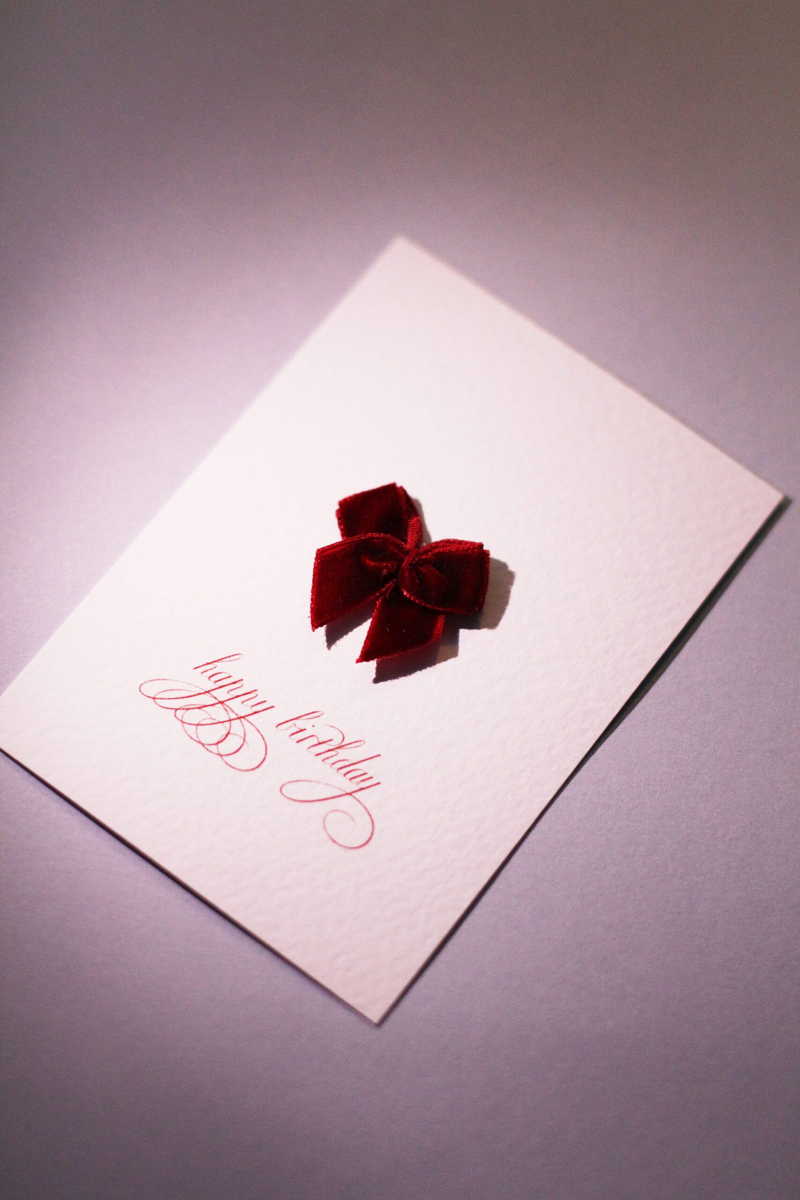 Листівка ручної роботи з обʼємним оксамитовим червоним бантиком. Листівка виконана на дизайнерському текстурованому картоні Tintoretto Gesso. До листівки додається прозорий пакетик